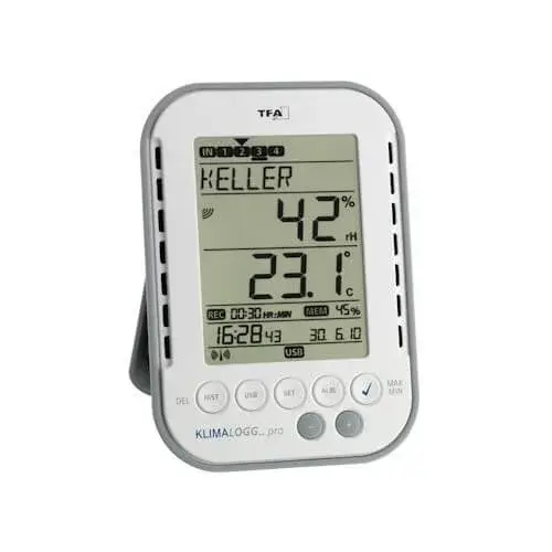 - TFA 30.3039 Datalogger, sıcaklık ve nem ölçümünün yanı sıra geçmiş verilerin kaydedilmesi için geliştirilmiş profesyonel bir termo-higrometredir. Hem bilgisayarınıza bağlanarak hem de cihazın üzerinde bulunan “HIST” tuşu ile geçmiş verileri görüntüleyebilirsiniz. Laboratuvarlar, ofisler ve bağıl nem takibinin önemli olduğu diğer her türlü ortam için ideal bir çözüm sunar.Özellikler: